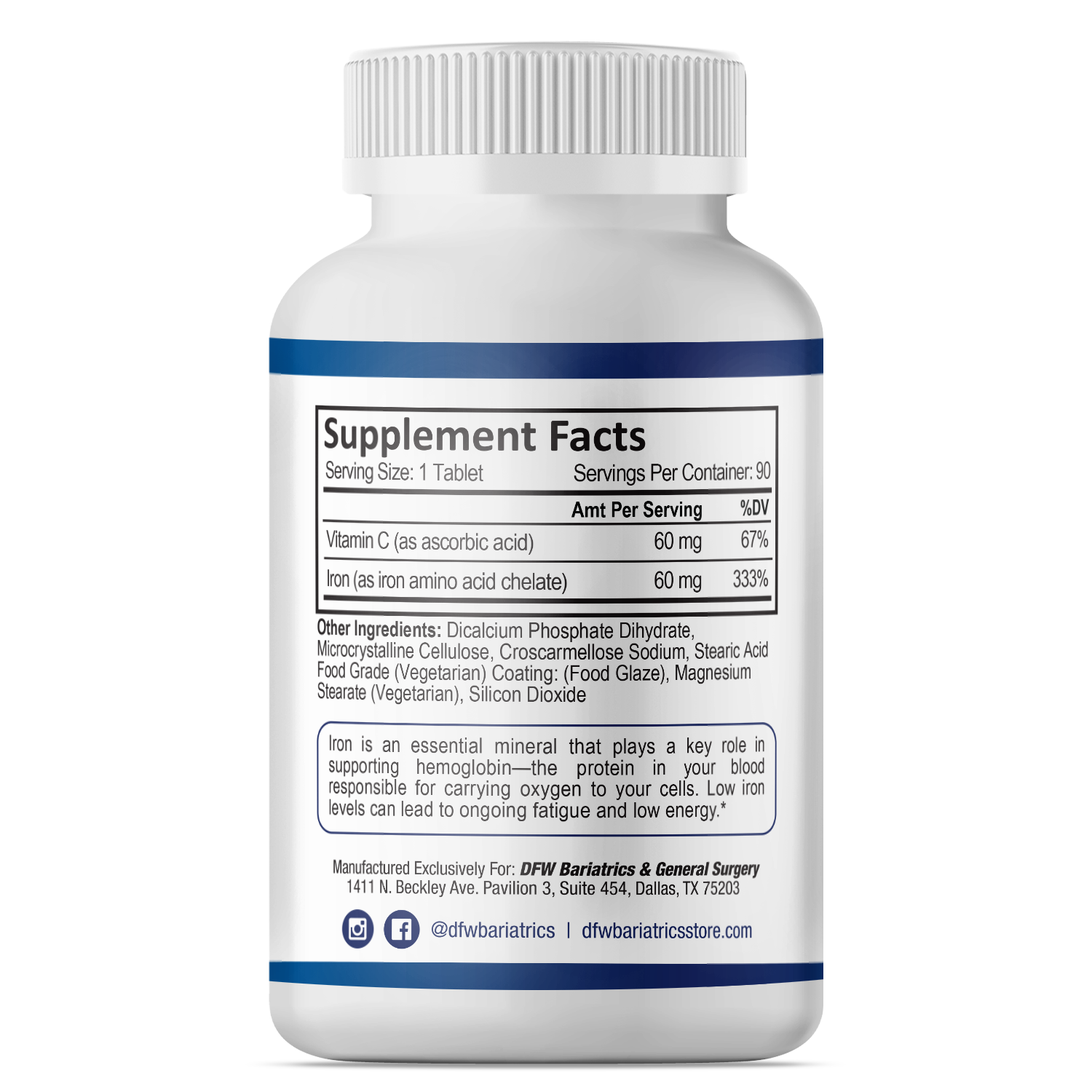 Boost your energy, fight fatigue, and support healthy blood with Iron plus Vitamin C — specially designed for bariatric patients.